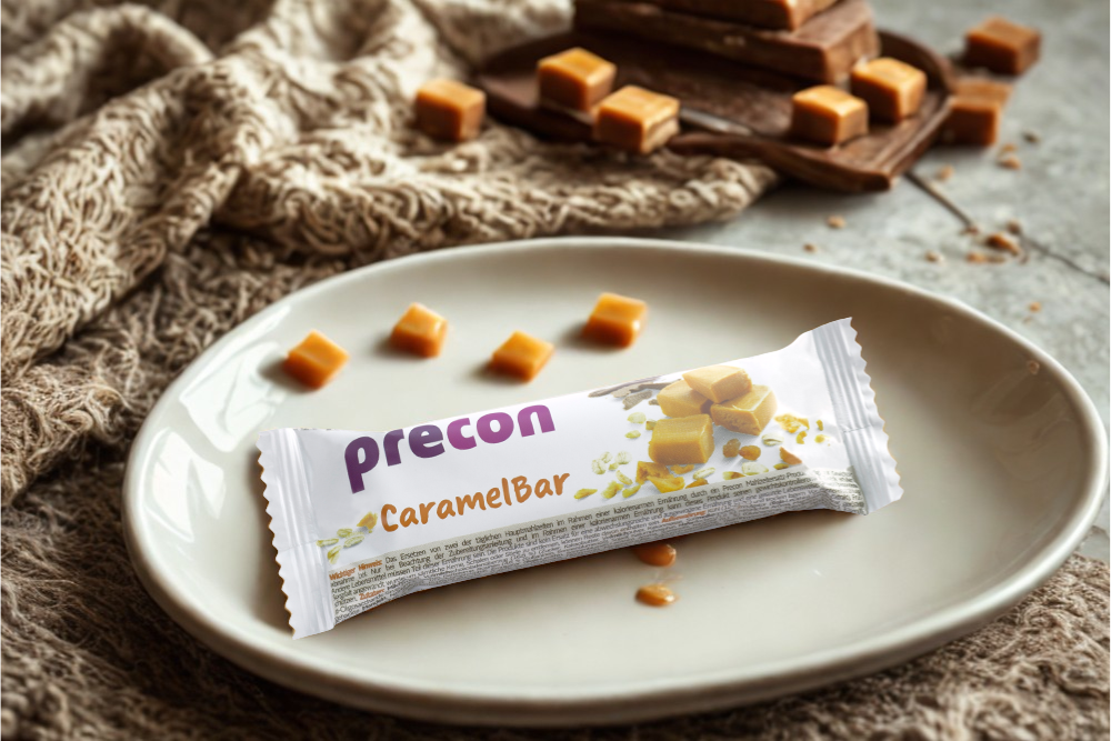 Unsere leckeren Precon Riegel ersetzen eine komplette Mahlzeit, versorgen Dich mit hochwertigen Proteinen, Ballaststoffen sowie 23 Vitaminen und Mineralstoffen – und das bei ca. 230 kcal pro Riegel.