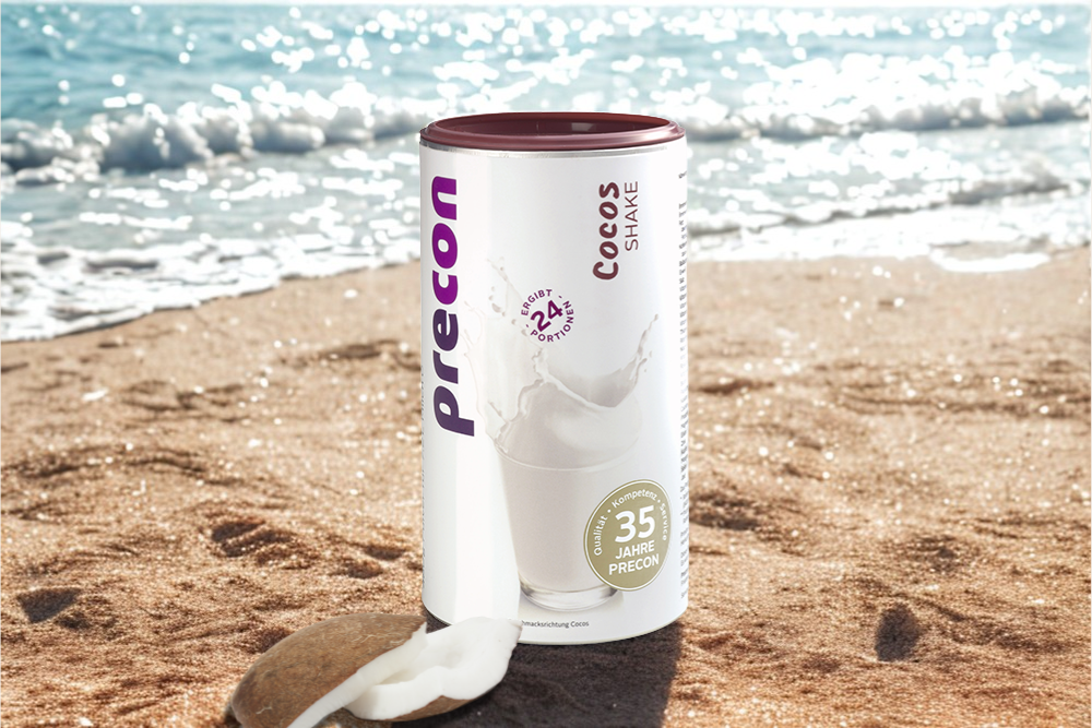 Der Precon Shake Cocos bringt Urlaubsfeeling ins Glas – ob warm, eisgekühlt oder tropisch verfeinert: