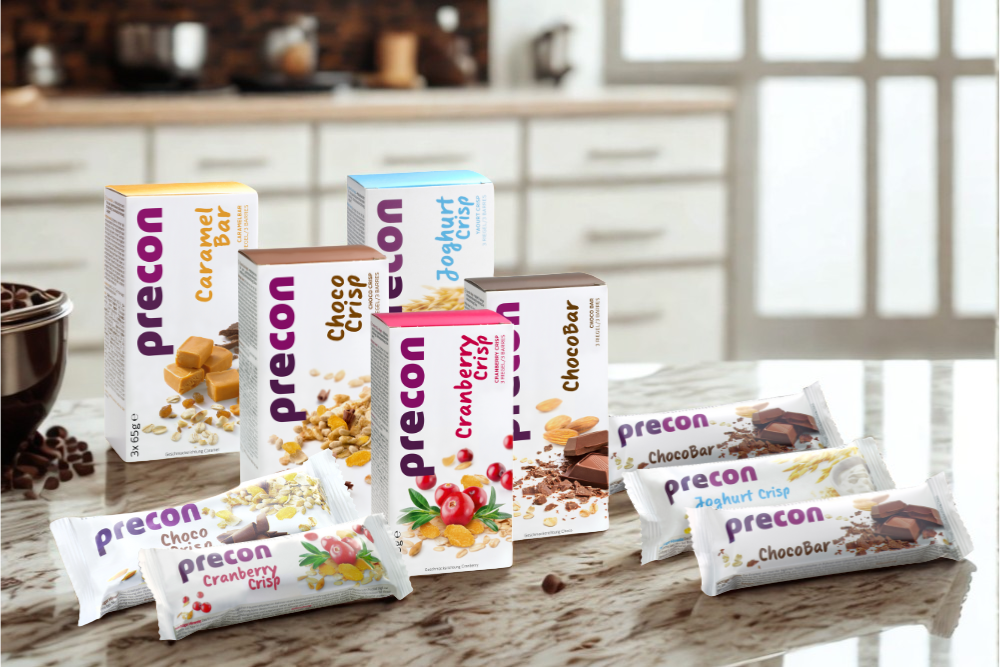 Das Riegelpaket enthält verschiedene Sorten unserer Precon Riegel. Alle Riegel sind nach den gleichen hohen Qualitätsstandards hergestellt und als vollwertige Mahlzeiten im Rahmen der Precon Ernährung geeignet.